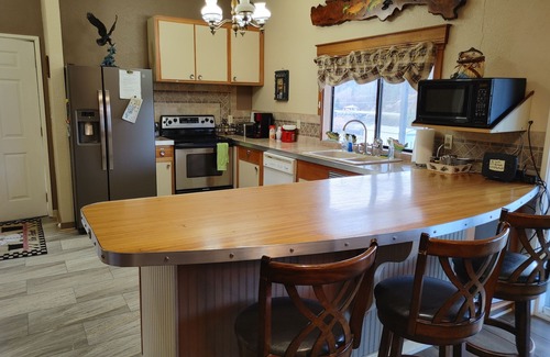 Lenore Lodge offers five beautifully designed bedrooms that comfortably sleep over 14 guests, making it ideal for bridal parties or family gatherings. The lodge features three full baths, two fully equipped kitchens, and expansive recreational spaces, including two cozy living rooms with flat-screen TVs and satellite service. Enjoy your evenings on the covered, open-air deck where you can savor the breathtaking sunsets or grill up fresh salmon from your day's catch. For entertainment, a dedicated game room awaits, complete with a pool table, poker table, and outdoor fire pit for those intimate gatherings under the stars.