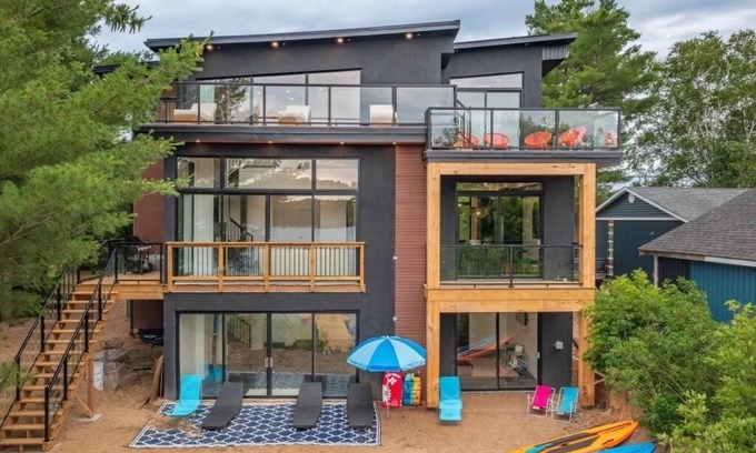 Malibu in Muskoka is a brand new luxurious lakefront home ideal for a large family, families or friends who like to holiday together. The property sleeps 14 (Maximum 8 Adults and 6 Kids), it has 6 bedrooms and 3 bathrooms.
