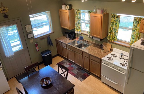 - Cozy cabin in secluded forest with deck on creek. Full kitchen. 900 square feet.