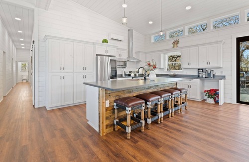 Outdoor enthusiasts will find themselves in paradise here. Lounge by the huge outdoor stone fireplace, complete with an 85” screen for your entertainment. Indulge in mouthwatering delights prepared on our Brazilian wood fire grill, Traeger, or flat iron grill. Our spacious patio, enveloped by majestic oak trees, can comfortably accommodate over 30 people and features a thrilling zip line and tree swing. It's the perfect venue for hosting unforgettable parties and family gatherings. We even provide firewood and grill supplies so you can focus on making lifelong memories.