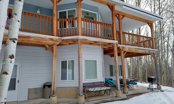 When the snow falls it's a winter wonderland, surrounded by snow topped Aspen's and Pines with unobstructed views of the mountains while sitting by the fire with your favorite beverage or