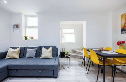 Indulge in relaxation and unwinding by staying at this tastefully decorated 3-bedroom, 3-bathroom flat. Conveniently located just a minute away from West Kensington tube station and a 10-minute walk to Barons Court tube station, the property provides easy access to Heathrow airport, Central London, and popular tourist sites. Serving as the perfect base to explore the City of London, this accommodation is ideal for business travelers, couples, large groups, families, and solo travelers alike.