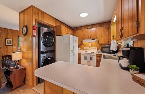 When you arrive, you will be greeted by the cozy charm of this mountain cabin. Inside you will enjoy an open concept for the kitchen/dining room/living room with a gas fireplace.