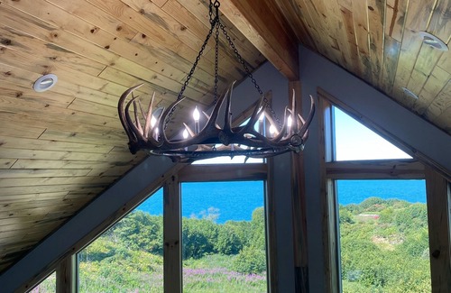 Built in 2021, this brand new beautiful cabin is awaiting you! With 1200sf on the main floor and a 600sf loft there is plenty of room for your whole family or group to spread out. The main floor features a master bedroom with king sized bed, attached private bathroom with dual vanities and walk in tile shower. The fully equipped kitchen opens up into the living room so nobody is left out. Kitchen table and breakfast bar seats 7. Also on the main floor is a laundry room, storage room with chest freezer and a powder bath. Set the thermostat at a fixed temperature or use the wood stove while enjoying the beautiful views seen from the 23ft tall wall of windows. Outside, the beautiful snow capped views of Mt. Redoubt and the other adjacent volcanoes towering to 10,000ft elevation are what attracted us to this private 6 acre slice of heaven. Stay inside or go out on the deck and enjoy watching the boats out in the Cook Inlet, passing bald eagles or maybe catch a moose or two feeding in the lush vegetation. There is also a Traeger grill for you to cook the days catch or make that perfect ribeye.