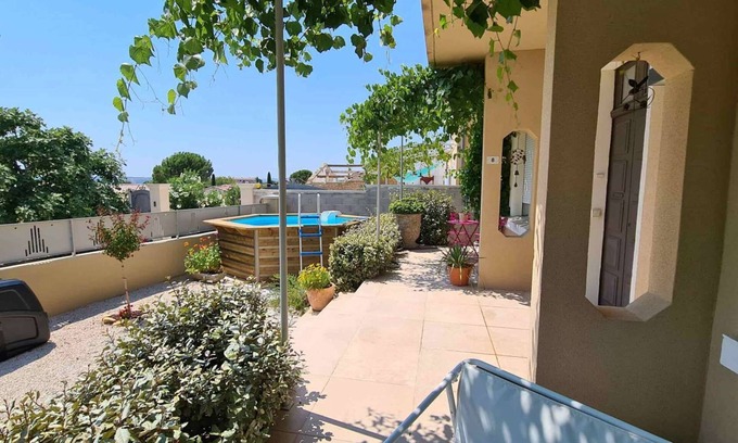 The house is very well equipped, tastefully renovated and fully air-conditioned with a heat pump hot/cold.Quality materials with wrought iron, pergola and small fenced garden of 80m² with an above ground pool reserved only for you. Possibility to park 2 cars.
