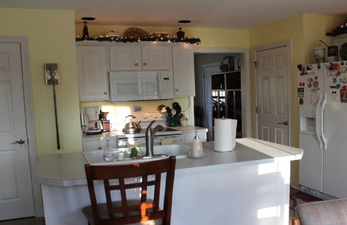 The kitchen has a Bunn coffee maker with warming pitcher, regular and decaf coffee provided, condiments and filters are supplied. A side by side refrigerator-freezer, glass cook top stove, oven, microwave, dishwasher and garbage disposal, and a large fully stocked pantry with spices, flour, sugar, Bisquick, etc. Please check what is available before grocery shopping. There is a plethora of cooking equipment for you to use if you wish to do your own cooking. I also like to cook and if you'd like for me to cook either breakfast or dinner on a certain day of your choosing, please let me know a day or two ahead of time.