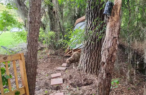Nestled on a peaceful, 0.76 acre sanctuary in Brunswick, Georgia, the 99 Retreat, offers a cozy off grid, glamping experience rooted in rest, nature, and wellness. Whether you're seeking a solo reset or a rustic Retreat With friends, this space invites you to unwind and reconnect. I currently have the tent set up for one person but can accommodate up to 3 people. let's work it some arrangements, We can have small events as well.