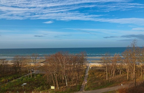 The name of the “Traumblick” (Dream View) apartment says it all, from here you have a fantastic view of the beach "Schwarzer Busch". It is 55m² and can accommodate 4 people. Located in the attic of an apartment house directly on the beach "Schwarzer Busch". Spacious living/dining area with large window front and a sofa bed (1.40x2.00m). A bedroom with a double bed and a feel-good bathroom with a glass shower and bathtub.
