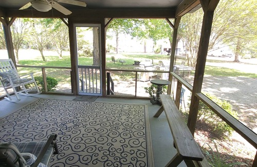 Located on a very secluded 15 acre property on the Severn River, directly across from the historic Inn at Warner Hall. Close to the Historic Triangle, (Yorktown, Jamestown, Colonial Williamsburg), the amusement parks, (Busch Gardens and Water Country), and the Chesapeake Bay. Located on the quiet Severn River, you can kayak, canoe, hike, cook out, nature watch, fish and sit on the pier and enjoy the breathtaking sunrises. Jameslin is the perfect retreat if you're seeking solitude, while having quick and easy access to the area's many attractions. Enjoy the cozy fireplace, fully equipped kitchen, relax on the screened in porch, or enjoy the tiki bar area with lighted pond and fountain.