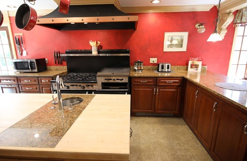 The fully appointed kitchen is the focal point of the house. A chefs kitchen for sure.