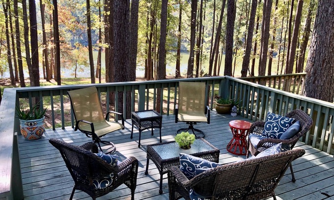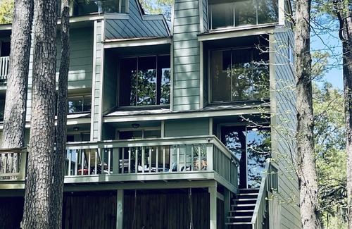 Welcome to the Lake House Treehouse! Ok, it's not an actual treehouse but it feels like it sitting on the deck! This 3 bedroom, 1 full+ 2 half bath townhouse is in a gated community on Lake Livingston. The water is steps away, and we have kayaks to use for fun and/or fishing. This fun hideaway has all the amenities you are looking for: full-sized stocked kitchen, wifi, 55" tv, games, corn hole, ping pong table, kayaks, fire pit, s'mores kit, chairs, fishing poles, etc. It's time to getaway!