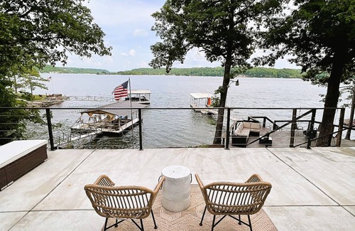 Hear the light hum of boats and serene nature in the background while cozying up beside an evening fire on the terraced double deck patio. Enjoy a glass of wine from the wine fridge while strolling the pier and take a leisurely nap on a new luxurious gel memory foam mattress after a day of excursion out on the lake! Prep your charcuterie board on the quartzite island (or grill out on patio Weber!) and enjoy while lounging on the double chaises on the spacious concrete tiered deck overlooking the big blue peaceful expanse of Smith Lake. Memories are sure to be made at this cottage. Welcome to The Lilly Pad!