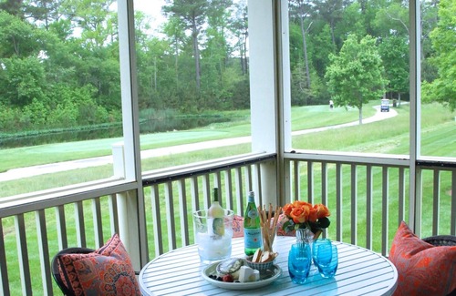 This home stands out from the rest with its impeccable furnishings, extra accoutrements, and prime location directly on the Peninsula's championship Jack Nicklaus golf course. Unlike interior rentals this provides privacy and direct pond and golf views from a screened-in porch and living spaces. In 2021 we completed a new back patio overlooking the 4th fairway and pond which features a built-in grill & refrigerator, bar top seating, as well as a gas fire pit adding a whole new dimension of fun!