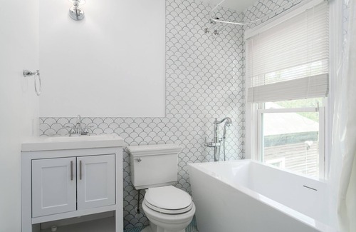- Soaking tub that converts to a stand-up shower