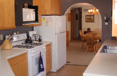Put your feet up in our relaxing 3 bedroom, 2 bathroom family cabin. The master has a king size bed, ensuite, and walk-in closet, while the other two bedrooms feature queen size beds, dressers, and closets for your use. You will find the kitchen fully equipped with pots and pans, cooking utensils, and a gas range. A dishwasher offers convenient clean up. No need to worry if you get dirty playing outside, there is a washer and dryer. Wi-fi and Direct TV IS available (May-October), but you don’t have to tell the kids. Central air will keep everyone cool on those hot summer days.