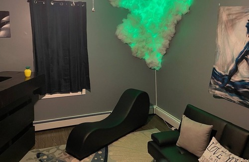 This unique place has a style all it's own. A place where you can explore all your fantasies. A little kink in the Playroom Swing and St. Andrews Cross included, a massage room for a little romance, Livingroom has a bar and a variety of games you and your guests can enjoy, all while still giving you the full comforts of home. All rooms have buckets with rags and sanitizing solution to ensure safe and healthy play.