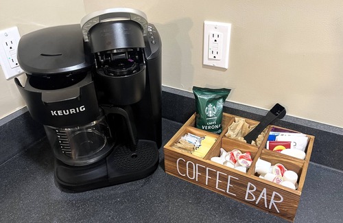 - Full kitchen with modern appliances. Keurig dual coffee maker with starter set of coffee.