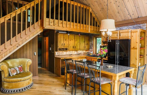We love coming to the treehouse just off clear Rock Lake. The Treehouse is a getaway, although there are neighbors, you feel as if you are nestled in a grove of trees. The house itself provides places where guests can linger, relax, sip a glass of wine or a cup of java or simply just be. One of my favorite features is the glass windows that wrap up around the ceiling so that it feels like the outside is coming in. *NOTE* children are completely welcome-the property has stairs and a two story wrap around deck fyi.