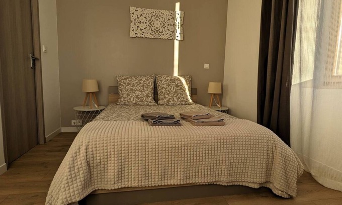 The fully renovated 19m² studio is located in a large character house with an independent entrance. You will be able to enjoy an independent entrance thanks to the key box from 5 p.m. The reversible air conditioning ensures optimal comfort in winter and summer. The kitchen area is equipped to allow you to cook and a welcome coffee will be offered to you. The living room includes a comfortable 140x200cm bed, HD TV with free access to TNT and Netflix, as well as free WiFi. The bathroom includes a shower, toilet and a hair dryer. Bed linen and towels are provided.