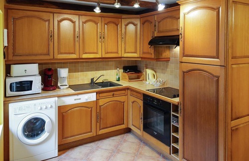 This beautiful and spacious stone house welcomes you in a quiet location in the countryside. You can make yourself comfortable on several floors and enjoy the friendly atmosphere of the house. Spend time here with your extended family and enjoy socialising in the living room, with games and good food and a crackling open fire. The terrace in front of the house also invites you to enjoy the sun or round off balmy summer evenings. In the garden there is plenty of space for your children to swing and play while you lie on the sun loungers.