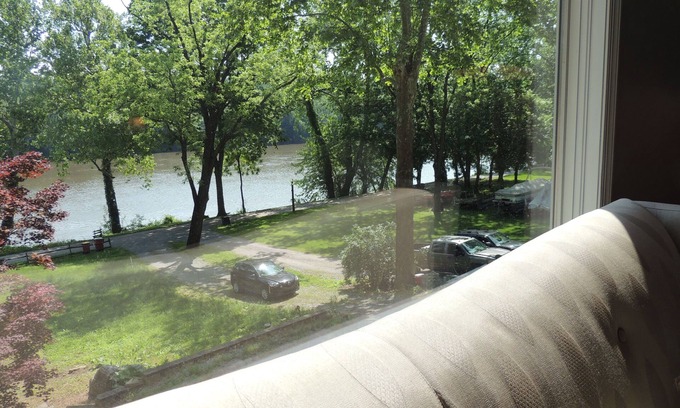 Here you will find three bedrooms that sleep six, two full bathrooms, a kitchen, a flat-screen television, wi-fi and the gorgeous views of the Potomac River, which divides West Virginia from Maryland on the opposite shore.