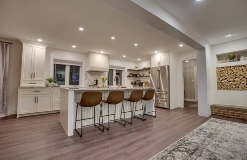It also has a basement with a cozy media area, games and a toy corner for the little ones in your group, we also have a pack and play and a high chair to make your packing lighter!