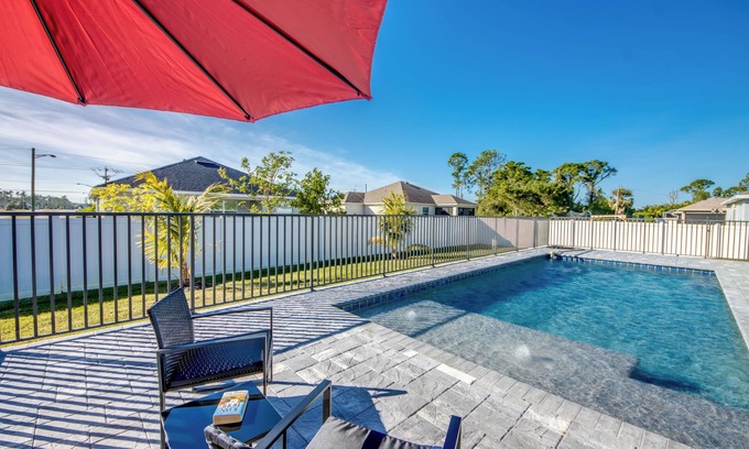 Escape the winter blues to sunny Florida! Welcome to our newest modern vacation home Villa Liliana completed in 2022. Indulge in the ultimate vacation experience with a private heated electric pool, perfect for unwinding and rejuvenating under the warm sun. The fully equipped kitchen with coffee machine, toaster, blender, ensures that you have everything you need to prepare delicious meals during your stay. From the moment you step inside, you'll be captivated by the luxurious finishes that adorn the floors and extend all the way up to the soaring ceilings, creating an ambiance of grandeur. With its three spacious bedrooms, King bed, 2 Queen beds, and a relaxing room it is a tropical retreat of relaxation.