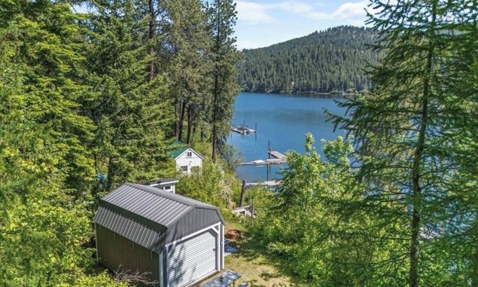 This cozy cabin offers the perfect blend of comfort and adventure for those seeking a true glamping experience. Nestled in a quiet location with 75 feet of lake frontage, you’ll enjoy deep-water swimming, fishing, and stunning views just steps from your door. The one-room “sleeping shed” is thoughtfully designed with two queen beds and a futon, providing a unique yet comfortable stay for families and small groups. This property incorporates rustic charm with modern comforts including—air conditioning, heating, and Starlink Wi-Fi to keep you connected and comfortable during your stay. Whether you’re sipping coffee on the shore, diving into crystal-clear waters, or simply soaking in the peace and quiet, this property is a little slice of heaven on Lake Coeur d’Alene. Perfect for nature lovers, families, or anyone in need of a relaxing escape!