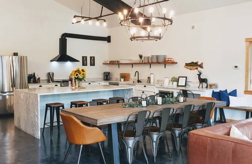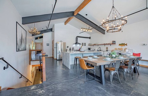 This amazing & very modern lodge will sleep up to 26 guests! With its 5 private suites each w/Private Bath (4 Kings, 1 Queen) each with their own private bath and the downstairs bunk room with 4 full size bunks & 4 queen size bunks. The space will surely become your "go to" lodge when coming to visit Leavenworth's Oktoberfest celebration (that's just a 1/2 block away), Leavenworth Village Of Lights Christmastown Festival, Winter Karneval, Spring & Summer wine tours, and so much more!