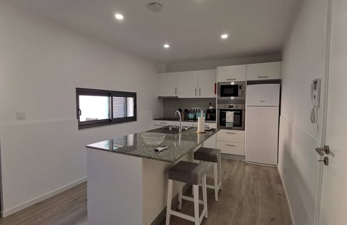 Step into our recently renovated modern 3-bedroom house, ideally located just 100 meters away from the pristine shores of Mosteiros Beach in São Miguel, Azores. The house boasts a stylishly furnished interior designed with comfort and relaxation in mind. The spacious living room invites you to unwind after a day of exploration and it offers an extra double sofa bed, while the three cosy bedrooms feature plush queen beds, ensuring a restful night's sleep. Stay cool during warm summer days with air conditioning throughout the entire house, and stay entertained with the provided TV and WiFi.