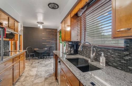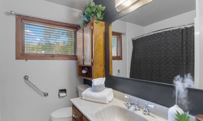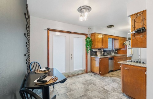 This 2-bedroom home is a quiet oasis. Experience the tranquil ambiance of this fabulous property, complete with 1 queen bed, 1 twin bed, 1 child bed and a separate dedicated work space. Enjoy the large, enchanting deck off the kitchen and the quiet serenity of the enclosed backyard. Book now and enjoy all the comforts of home and amenities, this home has to offer. Complete with black out curtains, full kitchen, central heat and air and a small basement family room.