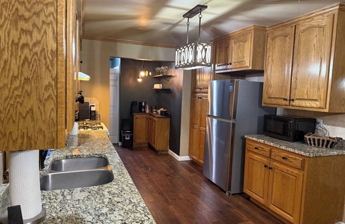 This 2-bedroom house in Clarendon is perfect for your escape to tranquility. New mattress with high end bedding provided for your comfort on a king bed, queen bed, and twin pull out bed. Guests will have a lovely and serene space to unwind. Enjoy the convenience of a coffee bar, washer and dryer, hair dryer, AC, and heating during your stay. Storm shelter also on the premises. We'll be available to answer any questions while you stay at our place.