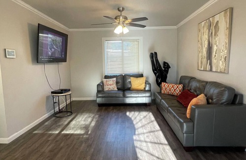 Your home away from home in Oakland with 3 lovely bedrooms. This charming house features a king bed, bunk bed with Queen and Twin bed, and another queen bed to accommodate all guests comfortably. Enjoy the convenience of WiFi, cable-Tv, a washing machine and dryer, heating, and more. With 3 bathrooms equipped with showers and a bathtub and hair dryers, your stay will be a breeze. Experience the magic of Oakland at our lovely house. I also have an ADT alarm system inside the house.