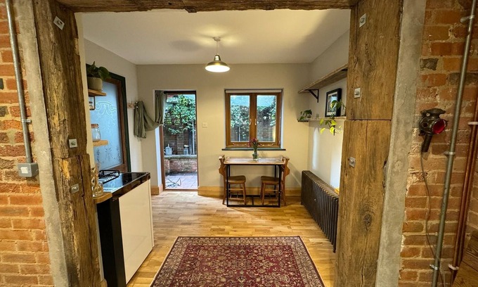 This cosy open plan studio features a bedroom & living space with a double bed, kitchenette (kettle/toaster/hob/fridge) and shower room. Although this studio is part of the main house it is a completely private space with its own access. It has sole use of the courtyard garden which is surrounded with trees, climbing roses and honeysuckle during spring/summer. There is an outside seating area perfect for enjoying a drink in the evening or coffee in the morning.
