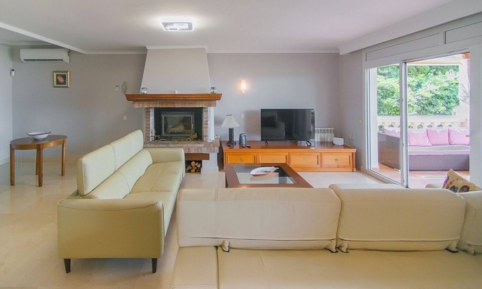 On the sunny coast of Costa Brava, in the picturesque city of Roses, there is a spacious villa of 200 m² - an ideal place for a holiday with a large group or family. This cosy house, with capacity for eight guests, will welcome you with an atmosphere of comfort and serenity.At the villa, you can access it via several comfortable stairs that highlight its Mediterranean style and offer magnificent views of the surroundings. Inside, a spacious living room with soft sofas awaits you, where it is very pleasant to spend the afternoon watching movies on the large television. Next to it, a cosy dining area where you can enjoy a meal in the company of your loved ones.From the living room, you can access the shared pool of 2 villas. Here, under the warm Spanish sun, you can cool off in the crystal-clear water or simply relax on a lounger, enjoying the tranquillity and beauty of nature. Or it will be a place for new encounters and a pleasant coexistence with neighbours.The villa's kitchen is fully equipped with everything necessary to prepare culinary masterpieces: from modern appliances to a complete set of crockery. Four cosy rooms - three with double beds and one with two single beds - will offer each guest a comfortable sleep and privacy. Two bathrooms, one with a shower and the other with a bathtub, will add comfort.For your vehicle, there is a designated garage.This villa is not just a house, but a true oasis for those who value comfort, privacy, and the beauty of the Mediterranean coast. Come and immerse yourself in the atmosphere of carefree holidays and create unforgettable memories!