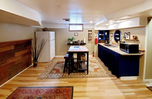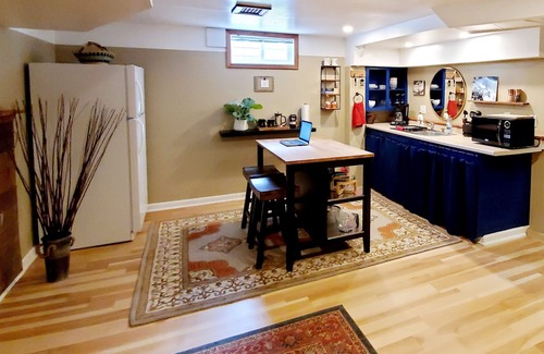 Come and enjoy northeast Portland in our sophisticated, well appointed basement guest suite with ample on-street parking, private entrance and a lovely backyard oasis, located within walking and biking distance (one mile) from the Alberta Arts District. Your on-site hosts have extensive neighborhood and Portland knowledge to help you find the perfect spot for your day trips. The shaded backyard with secret garden paths calls out to you to explore. Guests are welcome to use the gas grill, outdoor patio seating, complimentary bikes (2), or outdoor fire table in the evenings. We invite you to sit and enjoy some local micro-brew or local Oregon wines.
