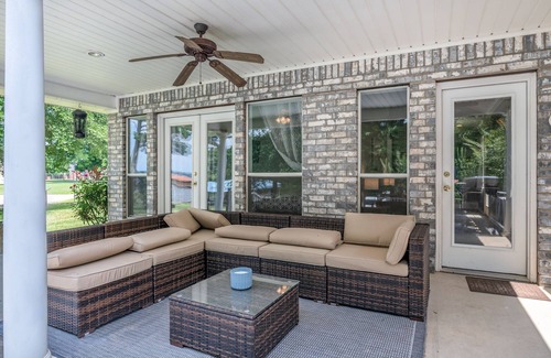 Bring the extended family to stay at our sprawling 4 bedroom, 3 bath lakefront home. The home has a covered patio and oversized deck with sweeping views of Lake Palestine, seating for 12, and a a grill. Walk a few steps down the flagstone path to the built in fire pit for night time s'mores. Keep going to the boathouse, complete with a slip and lift for you boat, a sunning/swimming platform, and a fish cleaning station. It's a perfect spot for enjoying a sunny day or getting in some night fishing.