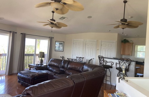 Come and experience the unique feel of a round house designed and built by world renowned Deltec Home, Inc of Asheville, NC. This 2 story home, built on pilings, comfortably sleeps 6 with 2 bedrooms and 3 full baths, washer/dryer and a queen sleeper sofa all located on the first floor. The second floor contains a fully equipped kitchen, dining room and a full bathroom. Smart TV in the Living Room, streaming available also in the bedrooms (no cable). From the 2nd story deck you will enjoy beautiful sunsets and see for miles with views of Charlotte Harbour in the distance. A large secured storage area is provided below the home for your convenience. From the hardwood floors, flat screen TV's, granite countertops to the ceiling fans, you will find this home to have a classy yet very comfortable feel.