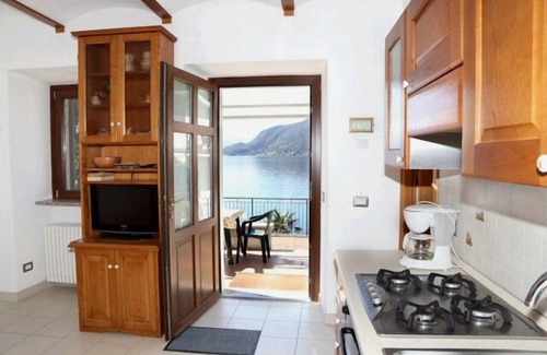 The two tasteful, partly newly furnished 2- and 3½-room apartments are located in a freestanding 2-family house in all-day sunny position directly at the lake. As the road runs behind the property, you can easily reach the private beach with only a few steps, which you only share with the inhabitants of the neighboring house "Riva del Lago". Each of the two attractive apartments has a free wireless Internet access and a spacious outdoor area consisting of two terraces and a garden; The larger apartment also has a balcony. From both apartments as well as from the outdoor areas you can enjoy a gigantic view of the lake and the mountains opposite. You can park your car on the free car parking spaces at the house. 2-room apartment "A" in the basement with about 30 m² living space, up to 2 persons: Well equipped kitchen with 4-burner gas stove, oven, satellite TV, gigantic lake view and exit to the two terraces and the garden bedroom with double bed (continuous mattress) and gigantic lake view Friendly and modern bathroom en suite with shower, bidet and window Approx. 20 m² garden with access to the private beach and the lake and a gigantic lake view Approx. 15 m�� large sun terrace with awning and access to the private beach and the lake, as well as a gigantic lake view 2nd, 50 m² large sun terrace with access to the private beach and the lake and a gigantic lake view