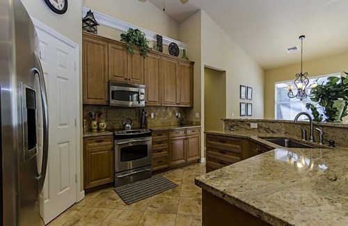 We arrived Thursday evening to a well manicured lawn and clean nice neighborhood. The house was perfect! It was me and two buddies in town for a 4 day golf weekend. The house was ideal, it had 4 BR with beds and 3 BA. The kitchen is well equipped and clean. The pool and outside is perfect for relaxing in the sun and taking it easy. Great big screen TV in the family room was perfect for watching football and golf. We played 3 different courses and all 3 were within 15-30 minutes from the house. We had a couple questions when we arrived, called the owner GALLY and had our answer within 20 minutes!! No neighbor noise or problems, nice safe neighborhood, big spacious house with awesome master bedroom and bath! Great owner, great house, great location.