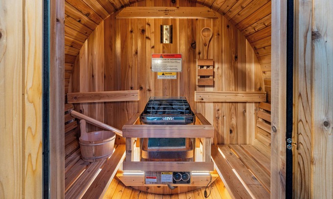 * Enjoy hot & cold therapy with the barrel sauna and cold plunge to detox and recharge.