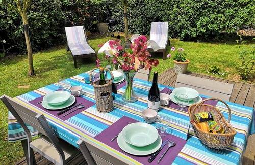 Cozy cottage, bright, quiet and recently within 400 meters from the beach and village. Ground floor, its large window faces south west and opens onto a wooden terrace and private garden and independent.