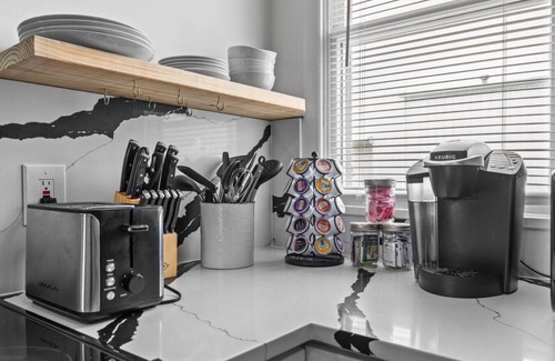 But the amenities don`t end there! Our fully equipped kitchen boasts modern appliances, including a fridge, microwave, stove, and dishwasher. A Keurig coffee maker is also provided, along with all the basic utensils you need to whip up a delicious meal.