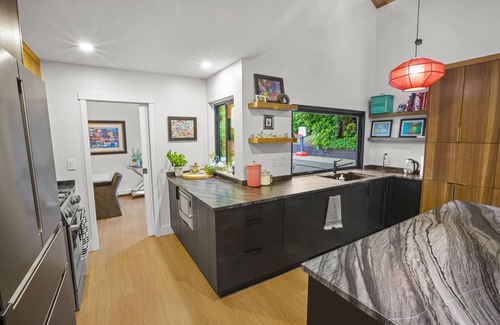 Newly renovated and lovingly restored 1970s west coast contemporary modern home. Unique in styling and designed for entertainment. Back deck area is perfect for gatherings with hot tub and grill area.