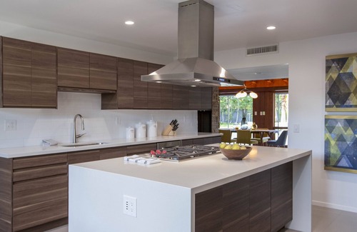 Absolutely stunning concept home featured as part of Palm Springs Modernism Week 2019. This is not your typical Palm Springs Vacation Rental. This walled and gated estate property (circa 1957) was reimagined by West Elm, a branch of Williams-Sonoma. Close to town and park. There is no garage parking at this home, guests park in the driveway. Beds: K,K,K,K.