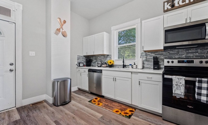Welcome to our elegantly updated 3-bedroom, 2-bath home in the heart of a vibrant, resuscitated neighborhood in Petersburg, VA. Nestled in an up-and-coming area, this fully renovated residence perfectly blends historic charm and modern comfort. Spacious haven of calm and sophistication, where contemporary furnishings mingle with stylish finishes. Three spacious bedrooms are tastefully decorated. Comfy queen-size beds and smart TVs. Spacious backyards with privacy fence. Private Balcony.