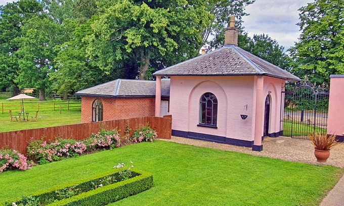 Rest and recharge when you choose this romantic pink gatehouse located in the historic Kimberley Hall Estate, Norfolk, an enchanting location from which to explore the River Tiffey and its hidden gem of a trail, nestled just 400 metres from the holiday home. Drink in the views of the majestic oaks and rolling parkland as you make your way along the Tiffey Trail to Wymondham and beyond. Ramblers may also seek out the Wymondham Abbey Trail (3 miles), a 1-mile circular route that weaves along medieval streets. Remember to look out for barn owls and turtle doves as you go. Guests will find many traditional towns and villages to explore, including Wymondham (3.5 miles) with its picturesque marketplace, shops and magnificent abbey founded in 1107. Alternatively, drive to the city of Norwich (9 miles) to experience the famous foodie, artistic and extensive cultural scene.