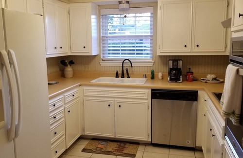 Equipped w/ a fully stocked kitchen - pots/pans, plates/bowls/silverware, Coffee Maker, some condiments.