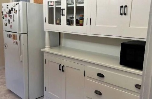 The wall furnace efficiently heats the space, ensuring you stay cozy during your stay. If you prefer a cooler environment, the portable AC unit can be placed in any room to provide relief from the heat. The fully stocked kitchen is perfect for preparing meals, and the abundance of sunlight adds to the inviting atmosphere.