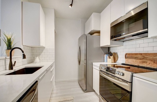 - Brand new kitchen cabinets, new quartz countertops and new stainless steel appliances.